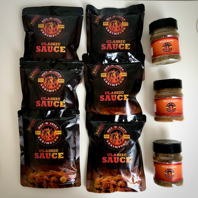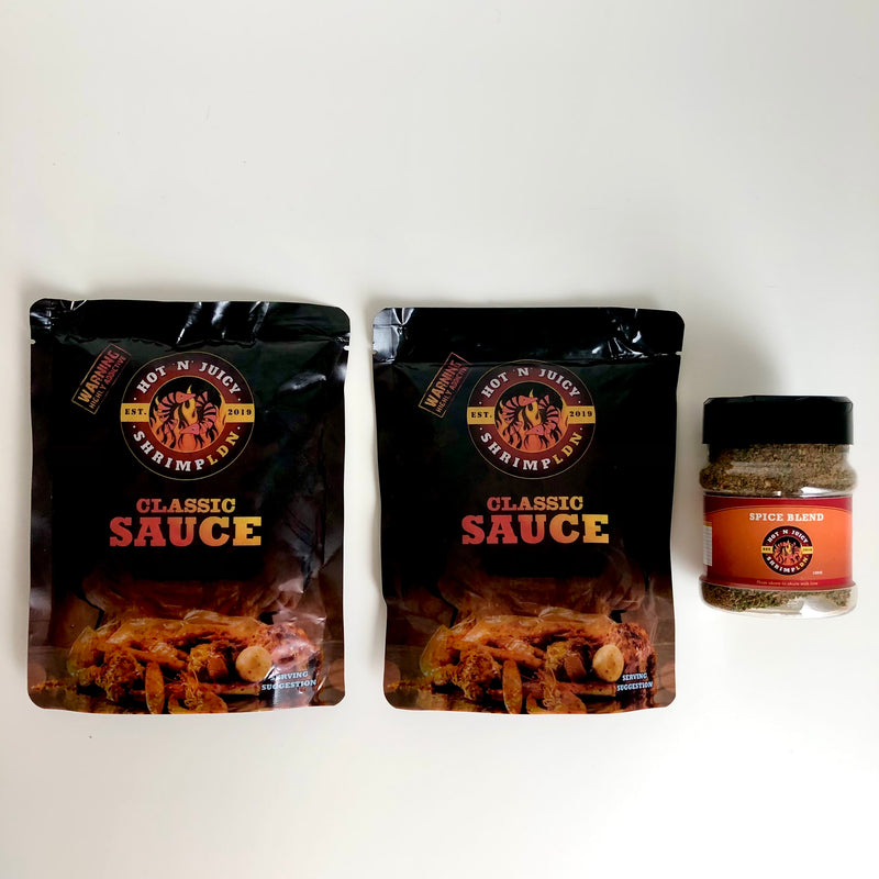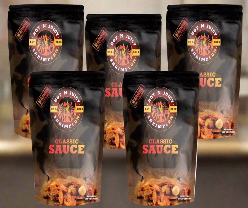 5 packs of Hot N Juicy Classic Sauce Pouches